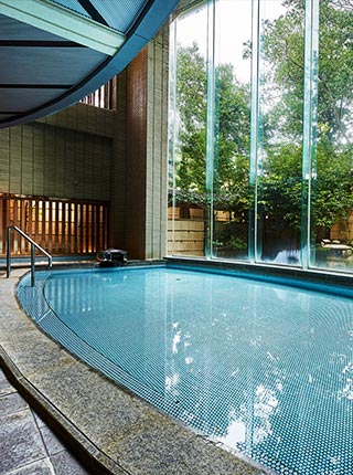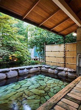 Relax and unwind from your travels in an open-air natural hot spring bath surrounded by a Japanese garden. -